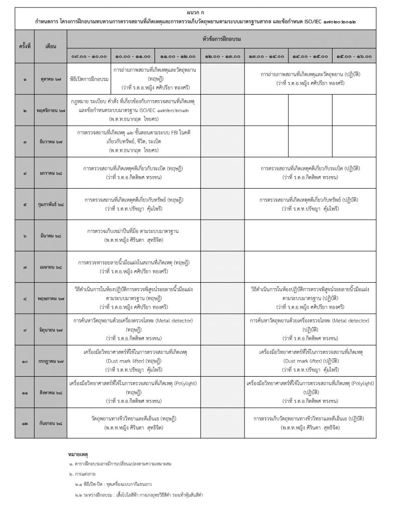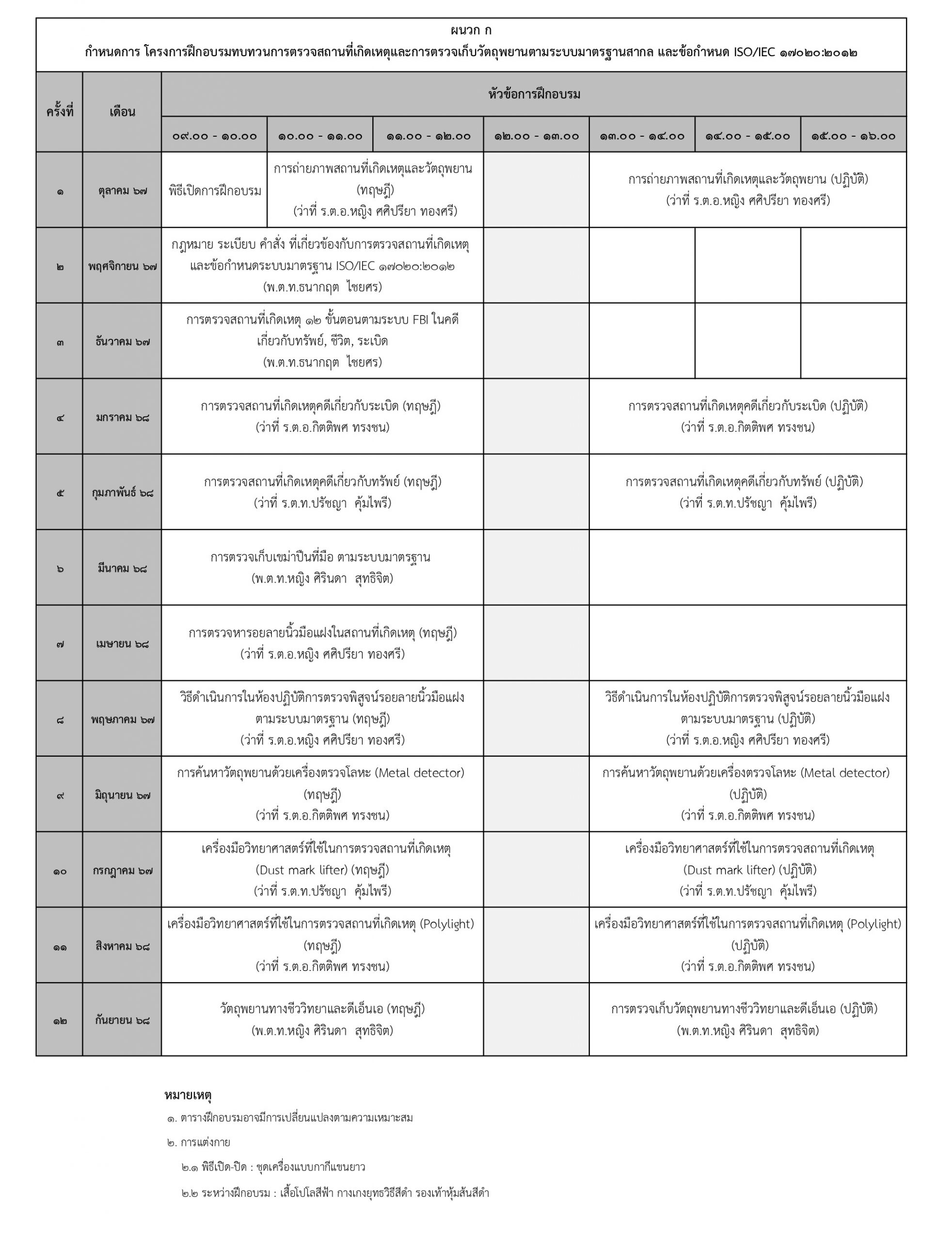 กำหนดการ โครงการฝึกอบรมทบทวนการตรวจสถานที่เกิดเหตุ