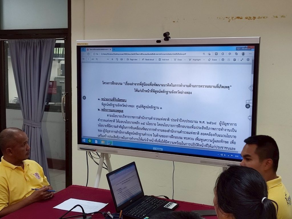 โครงการฝึกอบรม “เรื่องเล่าจากพี่สู่น้องเพื่อพัฒนาแนวคิดในการทำงานด้านการตรวจสถานที่เกิดเหตุให้แก่เจ้าหน้าที่พิสูจน์หลักฐานจังหวัดอ่างทอง”